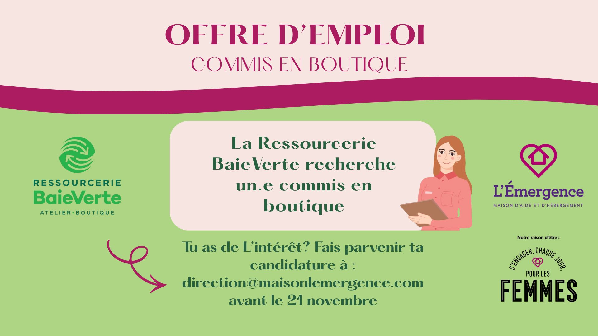 La Ressourcerie BaieVerte, atelier-boutique a pour mission de valoriser l’économie de seconde main, de contribuer à la transmission de savoirs et de lutter contre la pauvreté et l’exclusion sociale.